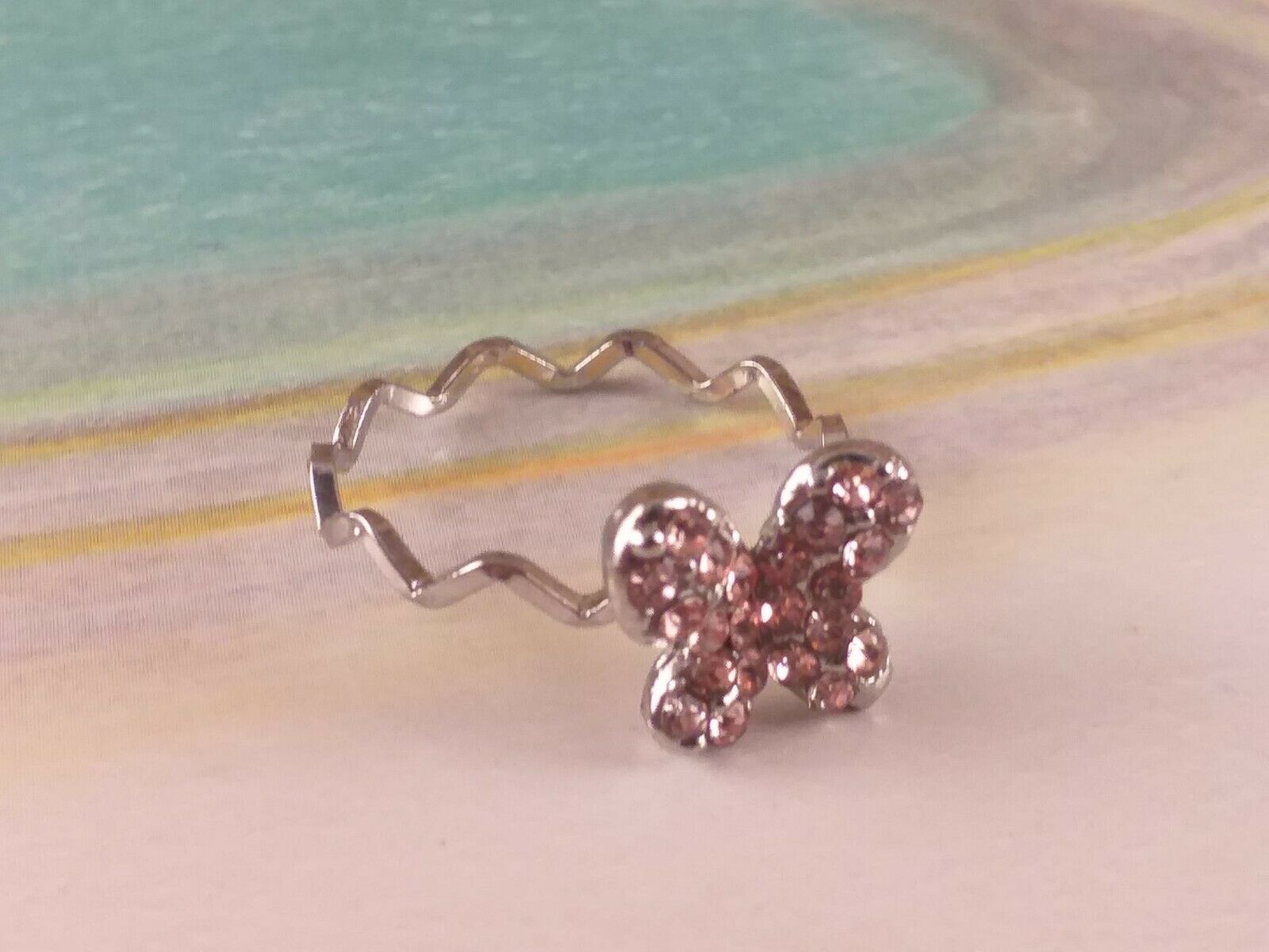 Anello Donna Colore Argento Forma Farfalla con Strass Rosa Tg.16 Bigiotteria