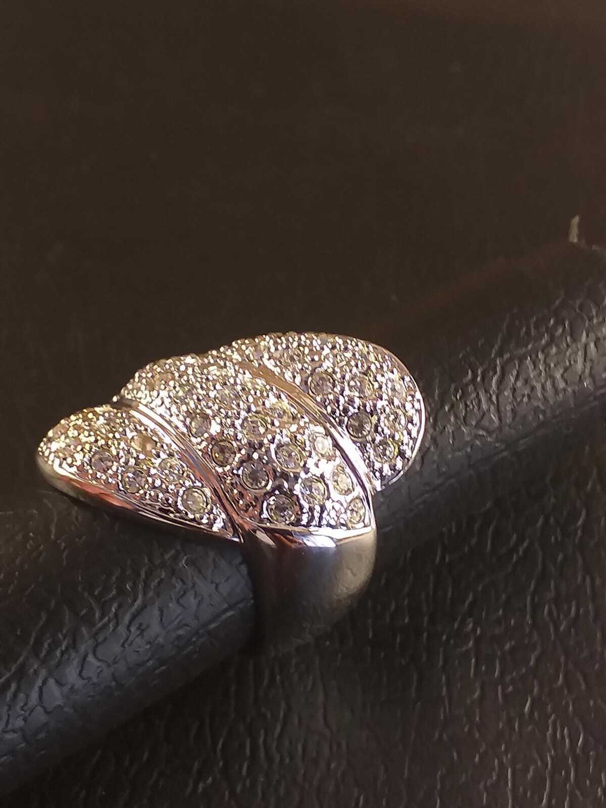 Anello Donna Elegante Doppio in Metallo Rodiato Colore Argento Strassato Size 17