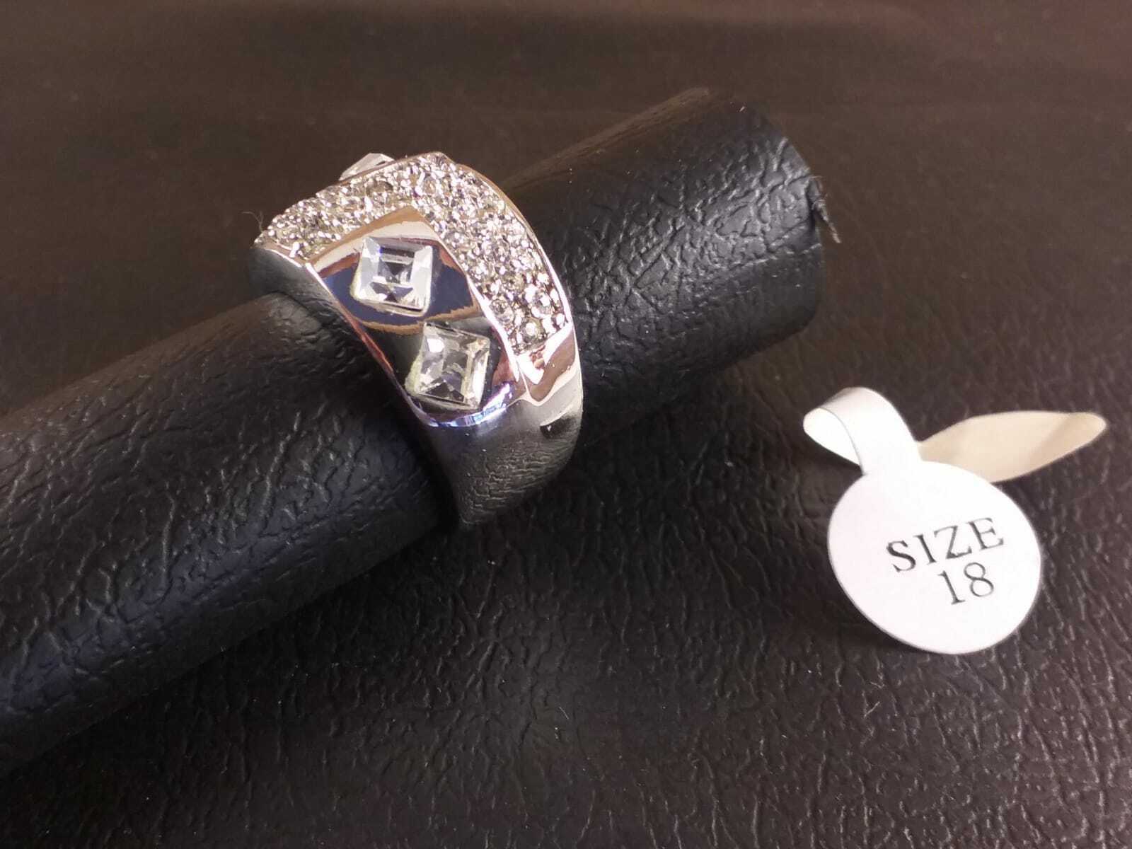 Anello Donna Elegante Doppio Metallo Rodiato Col. Argento Zirconi Strass Size 18