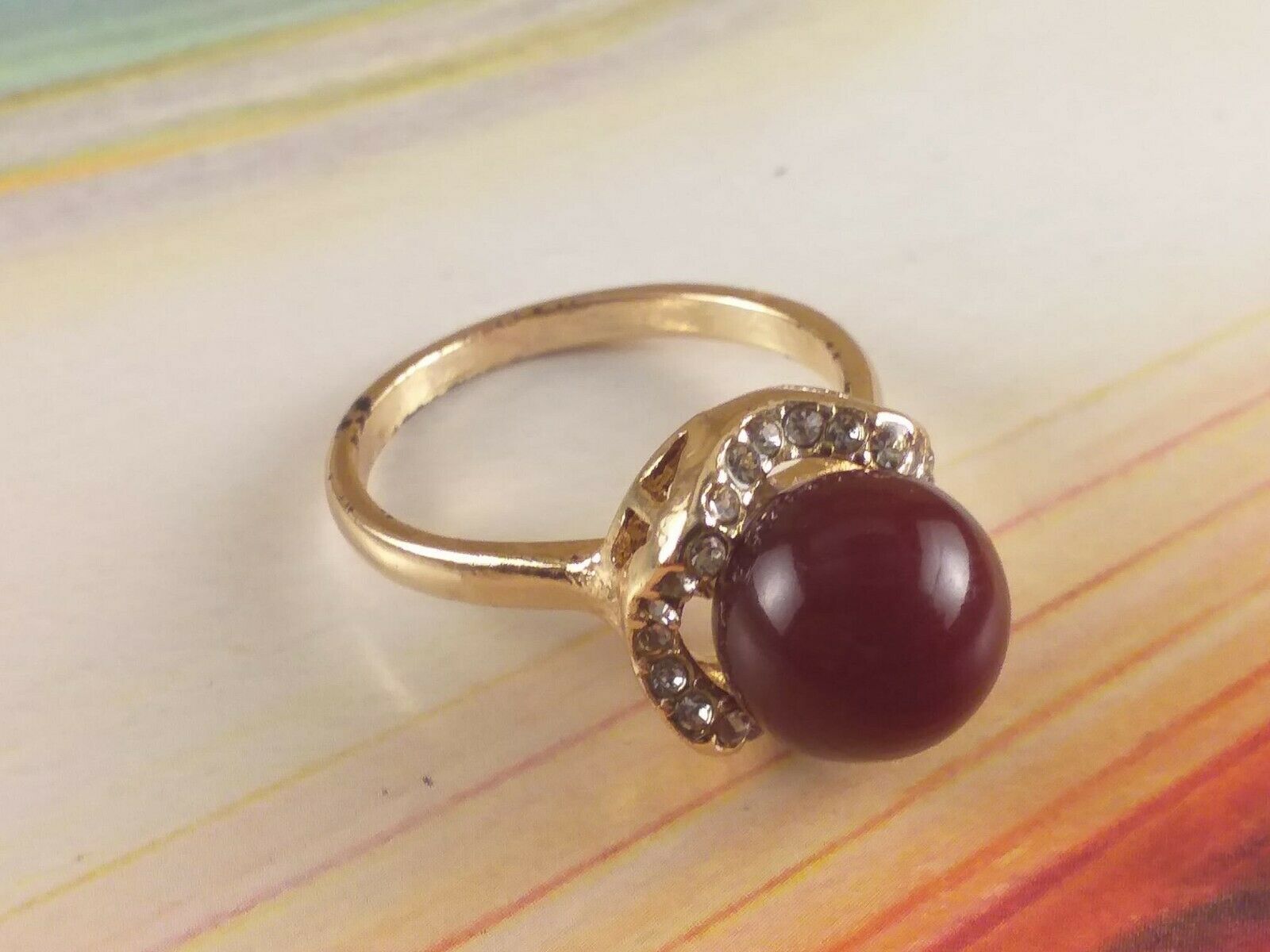 Anello Donna Metallo Colore Oro Perla Rossa Centrale Size 19 Bigiotteria