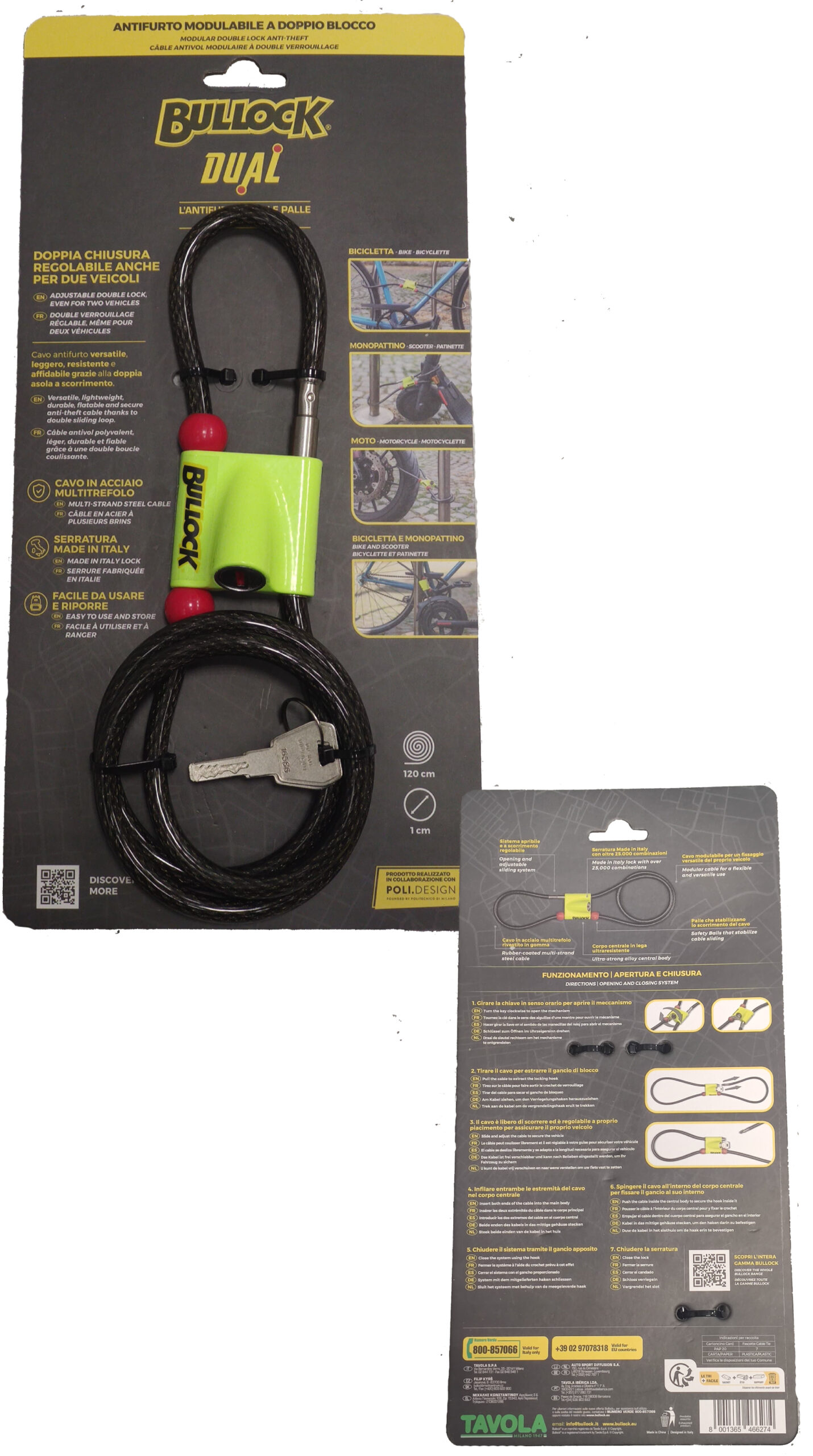 Bullock Dual Cavo Antifurto in Acciaio Multitrefolo Bici Monopattini Moto 120cm