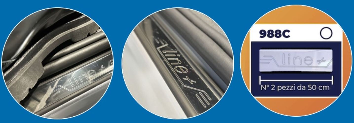 Applicare il profilo battitacco antiscivolo nella posizione prestabilita e premere uniformemente su tutta la superficie.