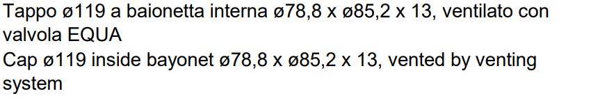 Tappo Ø119 a baionetta interna Ø78,8 x Ø85,2 x 13 , ventilato con valvola EQUA
