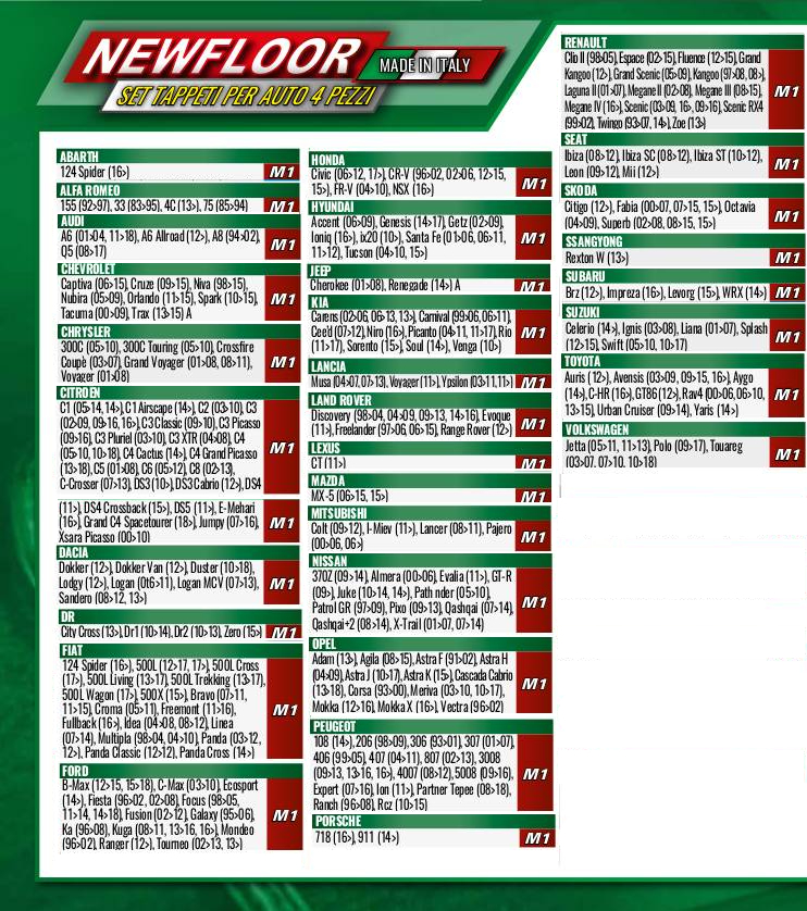 Serie completa 4 tappeti (anteriori+posteriori) in Moquette di alta qualità,