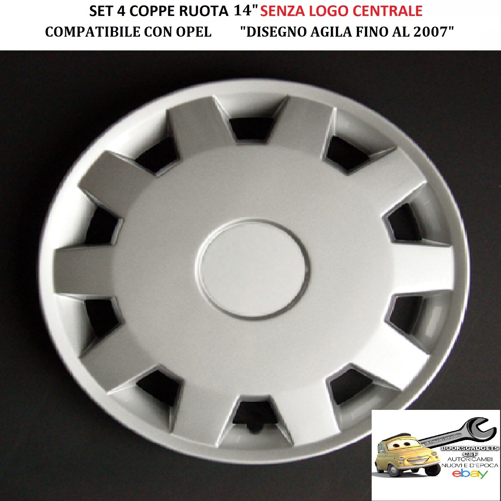 Per OPEL “Disegno Agila fino al 2007″ Set 4 Copricerchi 14” Universali (SENZA LOGO)