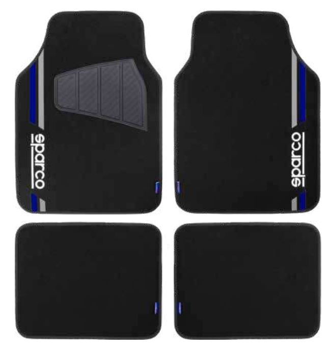 Comprende due tappetini anteriori e due tappetini posteriori.