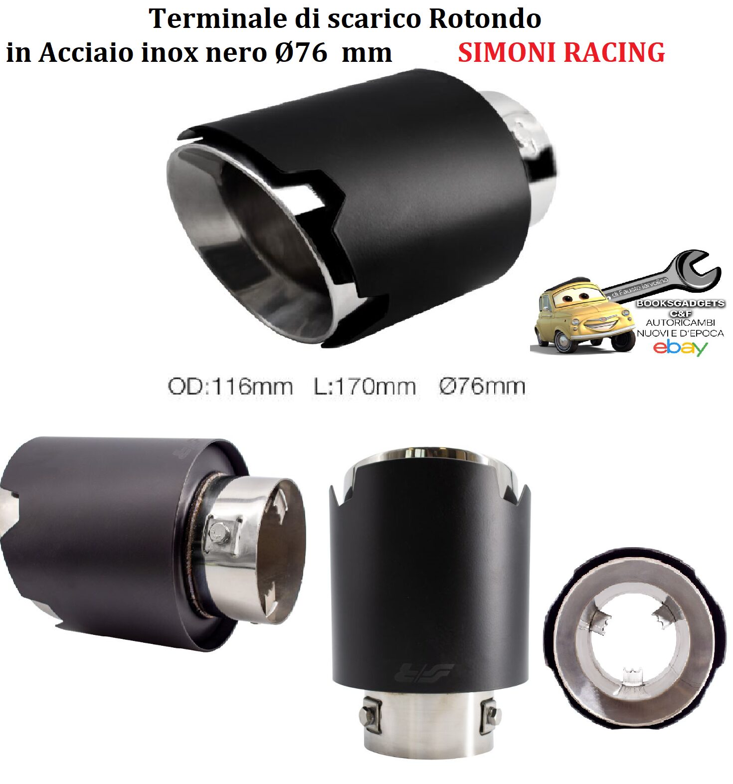 I Terminali sono, di solito, l’unica parte visibile di un sistema di scarico e sono il tocco finale per un look esclusivo della tua auto. Dal fissaggio semplice e veloce grazie all’installazione con bulloni, i terminali Simoni Racing, vengono realizzati in acciaio inox e proposti con una grande varietà di forme, dimensioni e finiture. I terminali sono universali e si possono montare sulla tua auto, però per sicurezza, verifica le misure e confrontale con quelle della nicchia del tuo paraurti. Verifica anche la misura del diametro interno del terminale con il diametro esterno della tua marmitta originale dove sarà avvitato e/o saldato.